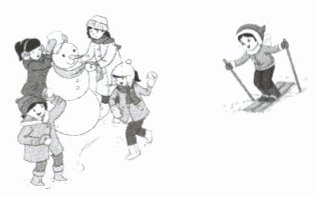 3. 观察插图3,图中小朋友在雪地里活动,有的堆雪人,有的滑雪,有的打雪仗,所以依次填入“堆雪人”“滑雪”“打雪仗”。