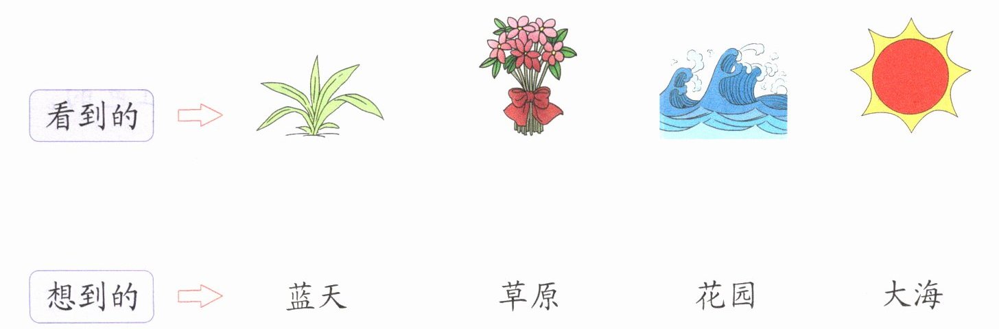 小草-草原 鲜花-花园 浪花-大海 阳光-蓝天