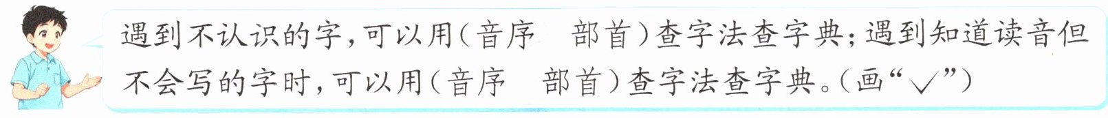 √ 音序)查字法查字典;遇到知道读音但不会写的字时,可以用(音序 部首