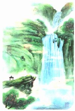 这幅画的层(cén céng)次感强,色彩搭配合理。山chuān之间,yān雾迷蒙,诗人登(dēn dēng)高yī山而立,遥(yāo yáo)望着远方的瀑(pù bù)布。
