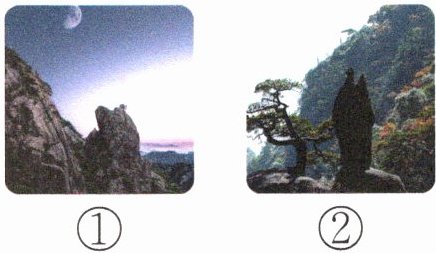 答案:1. ② ① 2. 它好像一位仙人站在高高的山峰上,伸着手臂指向前方。