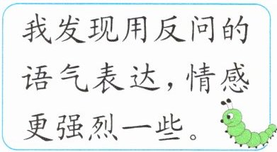 1. “叶子上的虫还用治?”是反问句,意思是叶子上的虫不用治,与②意思相同。2. “有几个虫子怕什么!”是感叹句,改为反问句需将“怕什么”改为“怕什么呢”并加问号,即“有几个虫子怕什么呢?”
