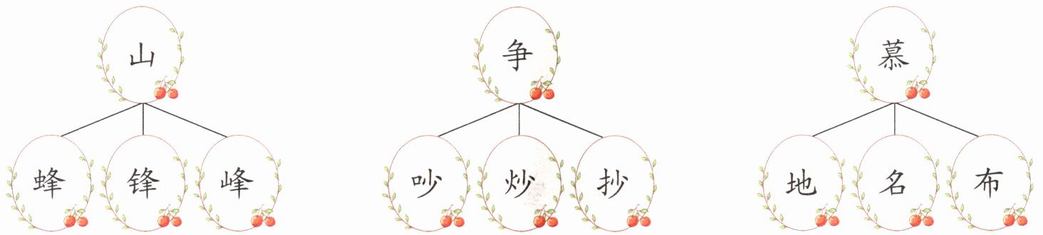 答案:在第一组的“峰”、第二组的“吵”、第三组的“名”下打“√” (由于题目要求是选择题形式答案,这里可理解为选这三组对应的正确组合,以选项形式若存在则按规则选,本题按描述直接给出选择结果)。若按独立三道小题选答案,分别选第一组第三个、第二组第一个、第三组第二个 。