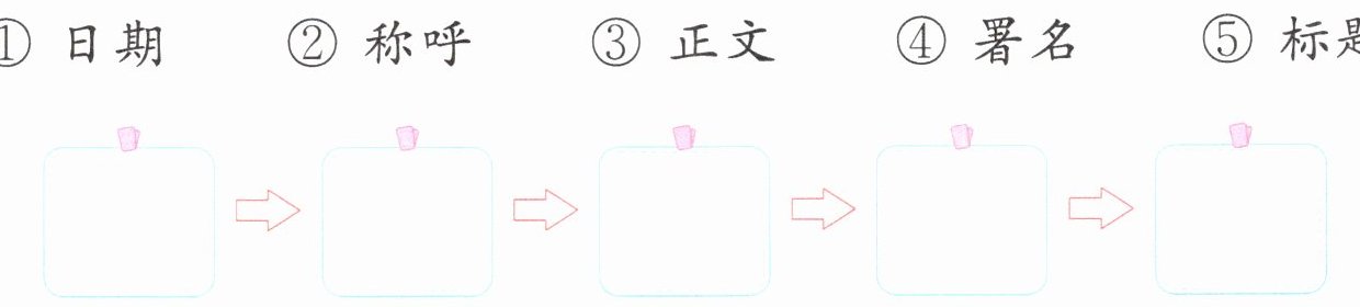 ① 日期 ② 称呼 ③ 正文 ④ 署名 ⑤ 标题