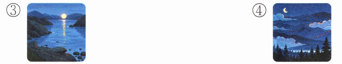 3. 从诗名“夜泉”以及整首诗的内容可知描写的是山泉夜景。观察图片,第③幅图有月光、山泉等元素符合诗意,第④幅图没有山泉相关元素。