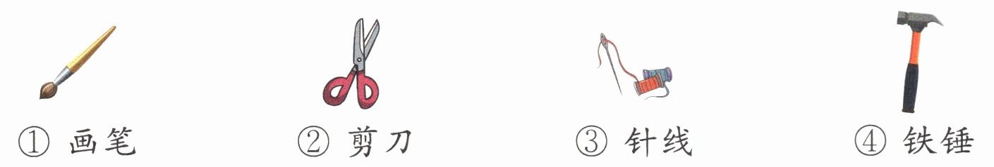 ① 画笔 ② 剪刀 ③ 针线 ④ 铁锤