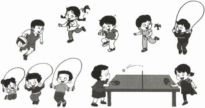 下课了,小朋友们的课外活动真有趣。看,有几个小朋友在跳绳,两边的小朋友用力甩动绳子,中间的小朋友轻盈地跳跃,脸上洋溢着快乐的笑容。还有的小朋友在打乒乓球,他们专注地盯着小球,你来我往,打得不可开交。另外一些小朋友在玩踢毽子,毽子在他们脚下飞舞,像一只只彩色的蝴蝶。大家都玩得非常开心,校园里充满了欢声笑语。