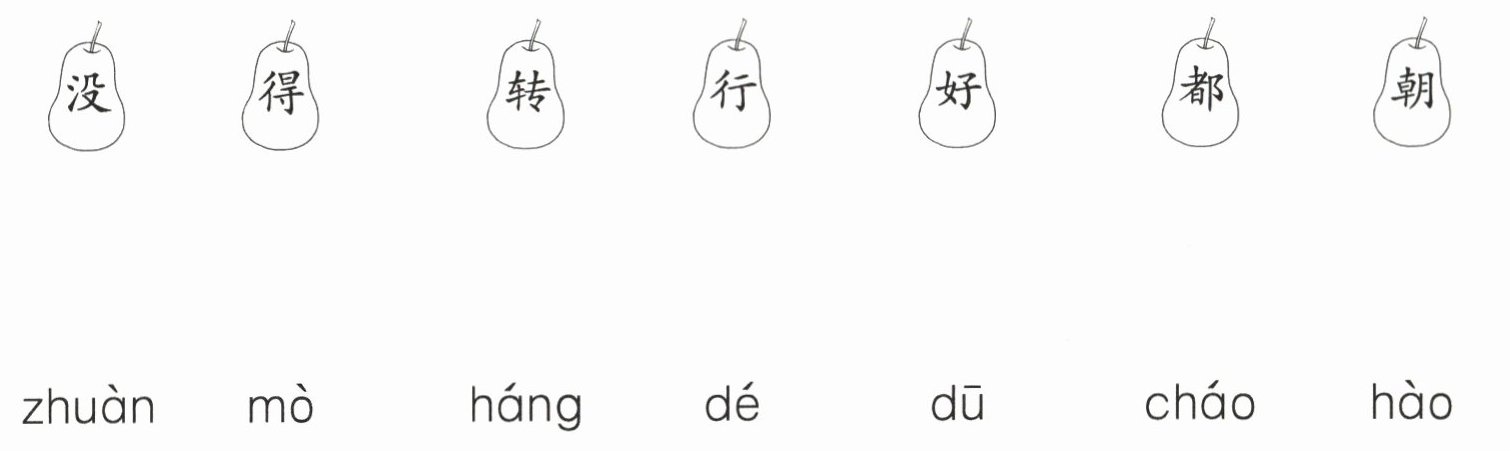 答案:没—mò;得—dé;转—zhuàn;行—háng;好—hào;都—dū;朝—cháo