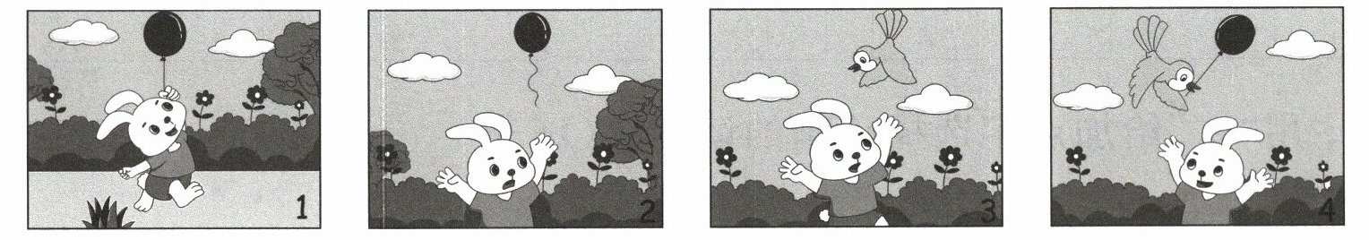 小(xiǎo)白(bái)兔(tù)在(zài)公(gōng)园(yuán)里(lǐ)玩(wán)气(qì)球(qiú)。突(tū)然(rán),气(qì)球(qiú)飞(fēi)走(le)了(le),它(tā)很(hěn)着(zháo)急(jí)。这(zhè)时(shí),一(yì)只(zhī)小(xiǎo)鸟(niǎo)飞(fēi)过(guò)来(lái),帮(bāng)它(tā)把(bǎ)气(qì)球(qiú)衔(xián)了(le)回(huí)来(lái)。小(xiǎo)白(bái)兔(tù)高(gāo)兴(xìng)地(de)笑(xiào)了(le)。