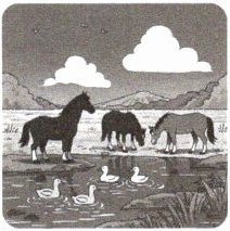 )骏马在饮水,四(只