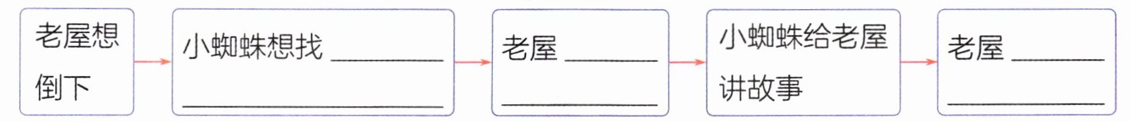⑤“没有,没有!”小蜘蛛一边忙着补网,一边回答,“老屋老屋,我给您讲个故事吧!”