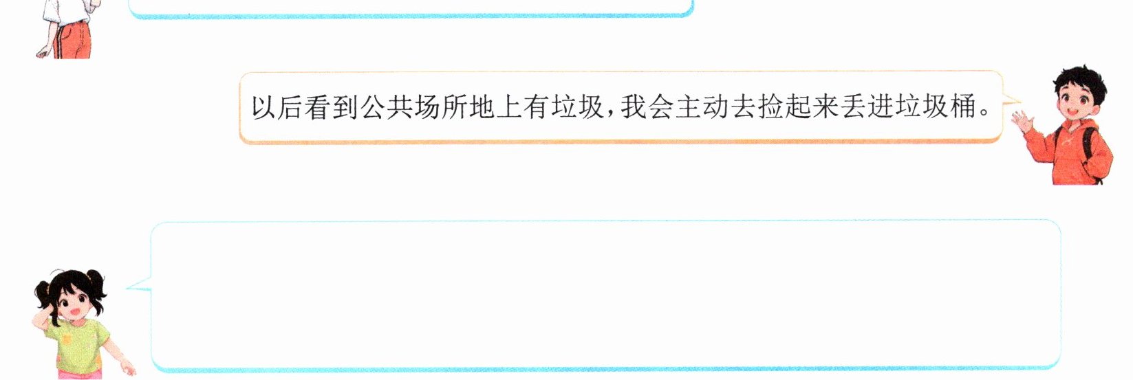 以后看到公共场所地上有垃圾,我会主动去捡起来丢进垃圾桶。