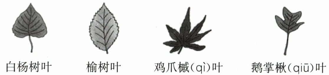 四、请你仔细观察下面的图片,并选择其中一种树叶,仿照《铺满金色巴掌的水泥道》一文中写梧桐叶的手法来写一写秋天树叶的美。(100 字左右)(5 分)