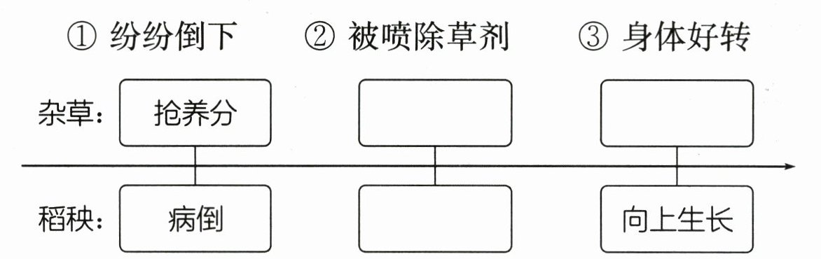 ① 纷纷倒下 ② 被喷除草剂 ③ 身体好转