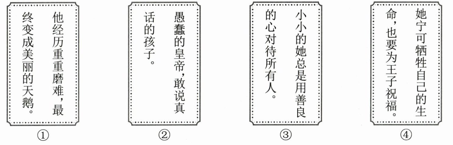 2. [书签故事]小语把喜欢的童话故事做成了书签,你能猜出相应的故事名称吗?(填序号)(4 分)