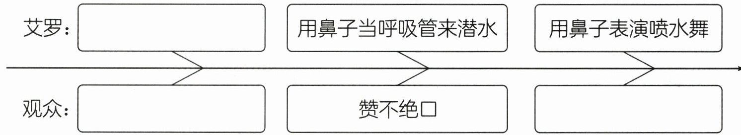 2. 艾罗:用鼻子抓住轻飘飘的羽毛;用鼻子当呼吸管来潜水(已填);用鼻子表演喷水舞(已填)