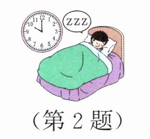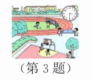 2. 第2题时钟显示时针在8和9之间,分针指向6,是8点30分,“8点30分”用eight thirty。