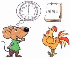 五、Bobby 在星期日早上遇见了 Mr Cock。看图,根据上下文完成他们的对话。