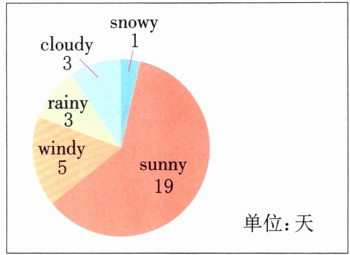 六、[新素材]Tom 汇总了南京一月份的天气情况。请根据饼状图,判断正(T)误(F)。
