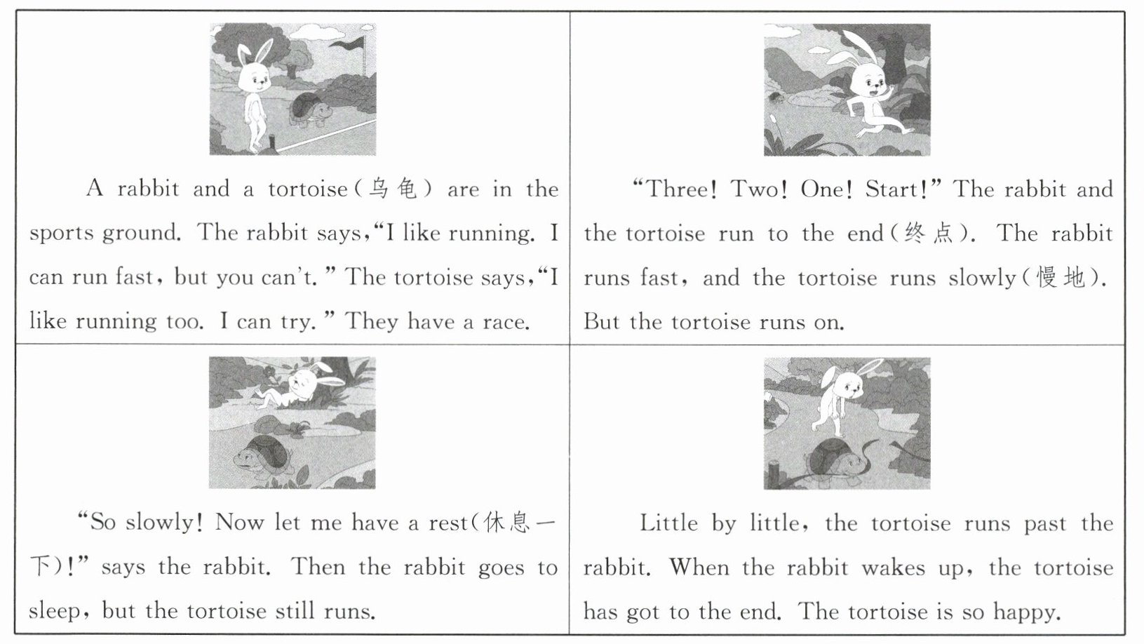 ) 2. The rabbit and the tortoise both like ______.A. sleeping(睡觉) B. running C. having a race