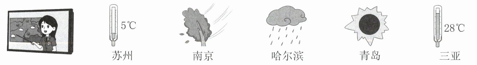 2. 第二空:从苏州温度5°C可知天气较冷,“cold”表示冷的,故填“cold”。