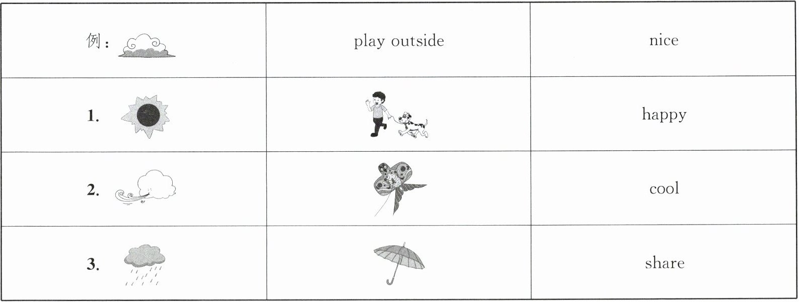 Let’s share it.答案:1. It's sunny and warm. I walk my dog.