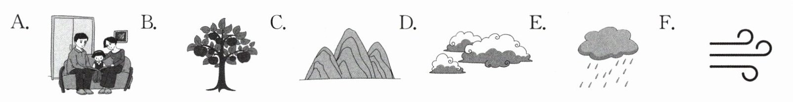 三、[新考法]听录音,根据所听对话,选择正确的图片,补全表格。(有一项多余)(每小题2分,共10分)