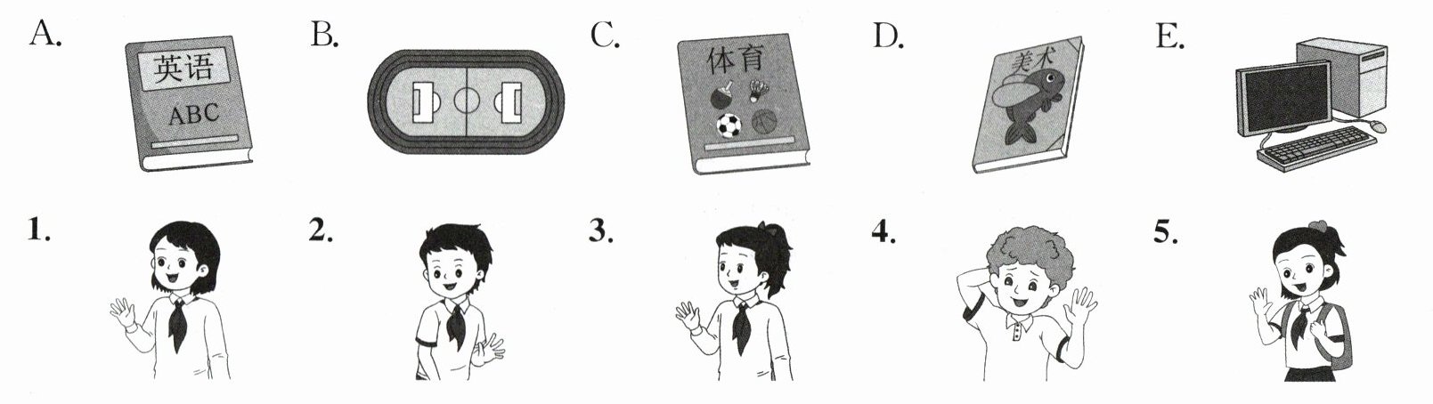 三、[新考法]听录音,给人物匹配图片。(每小题 2 分,共 10 分)