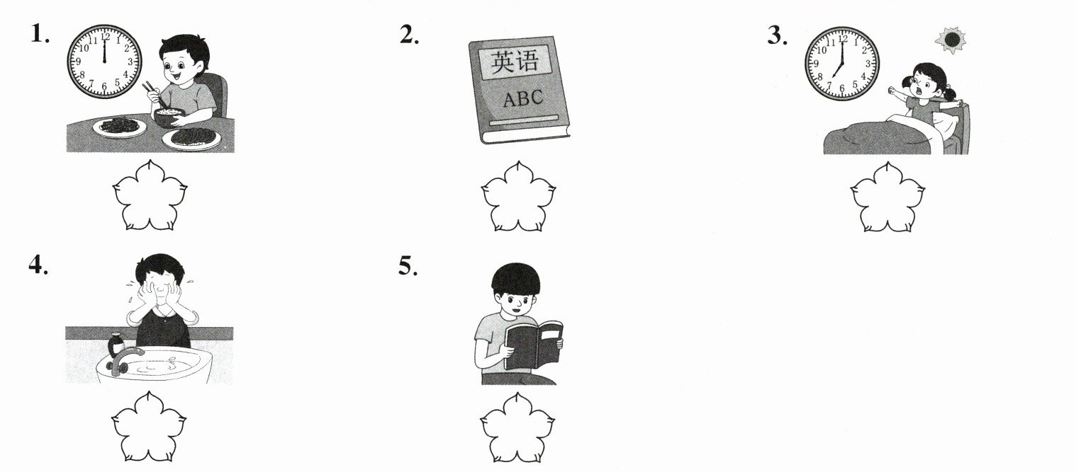 二、听录音,判断下列图片与所听内容是(T)否(F)相符。(每小题 1 分,共 5 分)