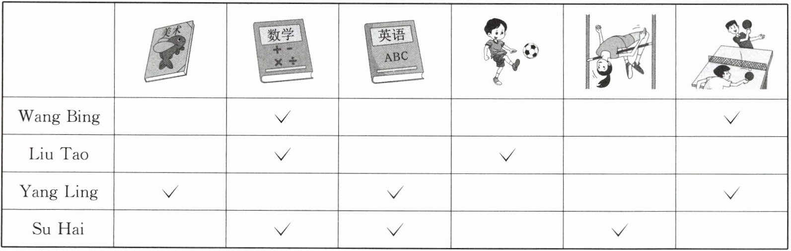 A. 根据表格内容,判断句子正误。正确的在题前括号内写“T”,错误的写“F”。