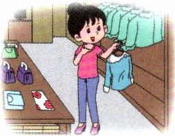 答案:1. She sees a pretty skirt, a pair of brown trousers and a pretty blouse.