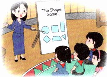 We all sit on the mat. Our teacher asks, "What shape is that?"