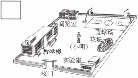 就能到达篮球场。(2) 在方框中画出能表示学校方向的指向标。