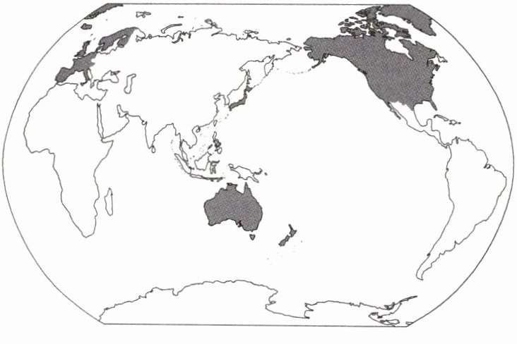 右图中阴影部分表示发达国家。读图,回答下列问题。