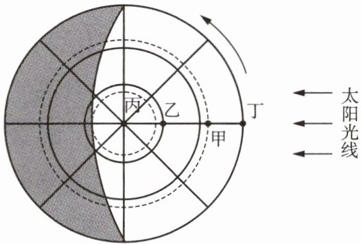 右图为以极地为中心的某日太阳光照示意图,图中阴影部分表示黑夜,圆圈表示纬线,直线表示经线,箭头表示地球自转方向。读图,回答23~24题。