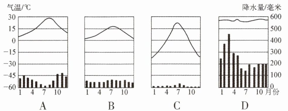 26. 与“雨林湿又③”相对应的气候资料图是(