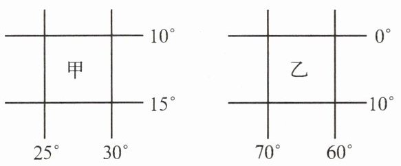 4. 甲、乙两个地区的经纬度的位置如右图所示。下列叙述中,正确的是(