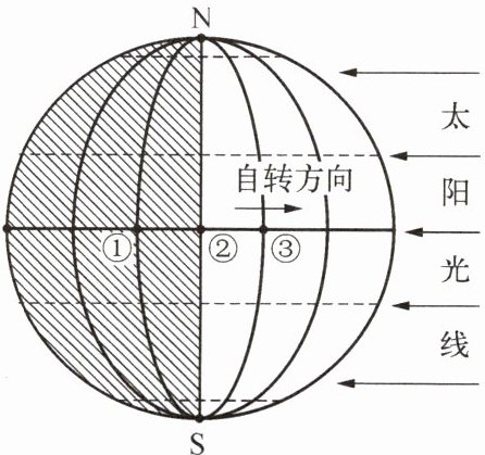 读右侧太阳光照图(阴影部分表示夜半球,非阴影部分表示昼半球),回答 7~9 题。