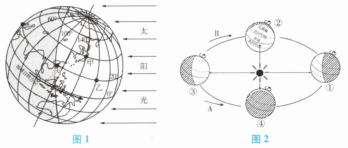 (填序号)之间,此后一周内,图 1 中甲地的昼夜长短情况为昼长夜短