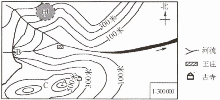 (3) 若古寺与王庄的图上距离为 1.5 厘米,则两地间的实地距离约为