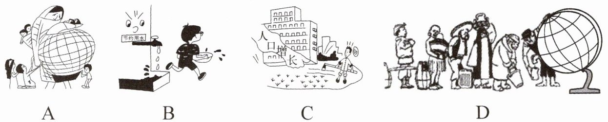 9. 下列漫画中,不属于人口增长过快带来的问题的是 (