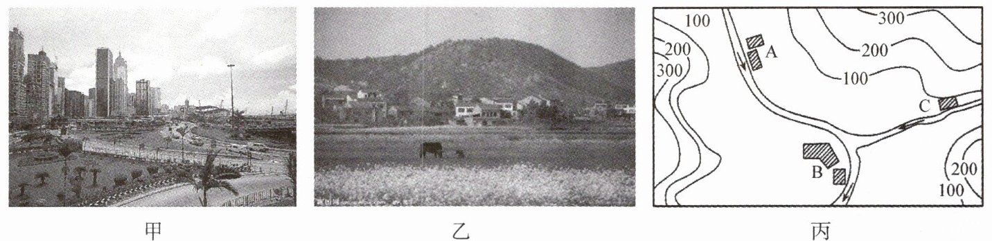 (3) 据丙图中信息分析,A、B、C三处聚落选址的共同地形因素是