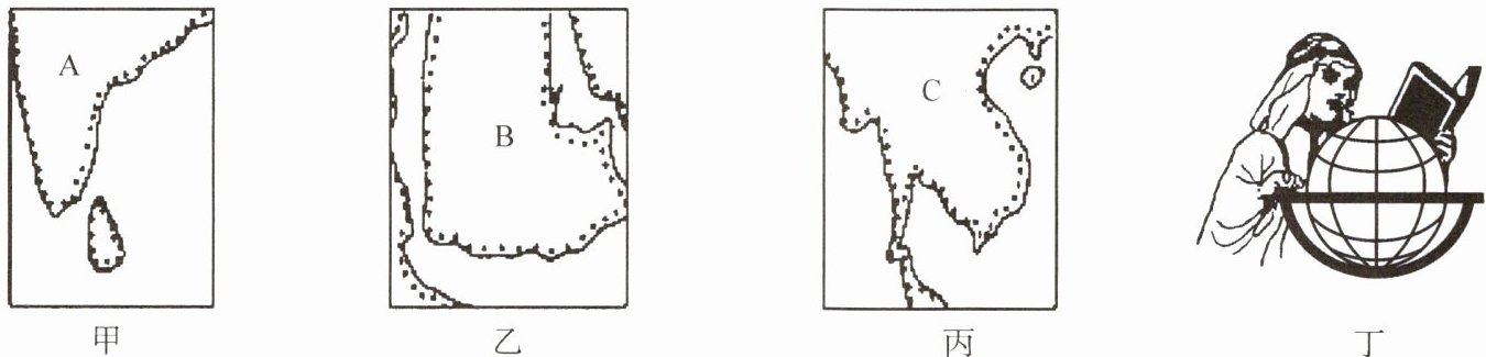 是这里的宗教建筑物。(3) 图丙中C所在的是中南半岛,分布着