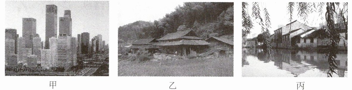 (2) 如果甲图是北京的景观图,你认为北京在发展过程中,应如何对待传统民居四合院?