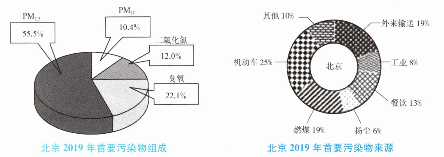 (1) 2019年北京首要污染物构成中,比例最大的是