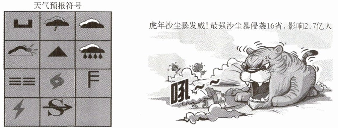 (填符号)天气现象。(2) 夏季到来,雷雨天气增多,我们每一个人都必须提高防雷意识,采取有效措施防止雷击事件的发生,其符号是