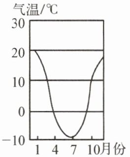 7. 右图所示是某地气温年变化曲线图,据此判断该地位于 (