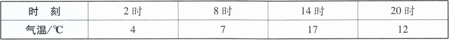 2. 若下表中的数据是小刘在室外测得的某日气温值,则该地当日的日均温为 (