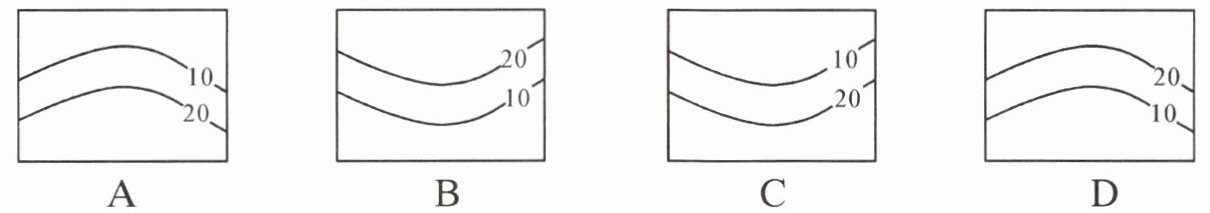 6. 下图为等温线示意图(单位:℃),能正确反映北半球大陆7月份气温分布特点的是 (
