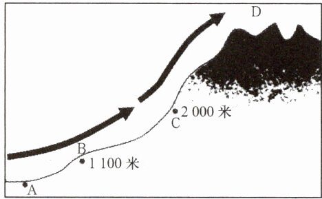 (1) 计算图中各点气温:如果A处海拔是300米,气温为16℃,那么海拔1100米的B处气温是